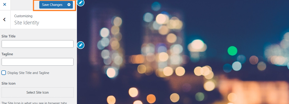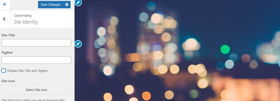 Step 3: Select Site Setting and uncheck Display Site Title and Tagline and Save Settings